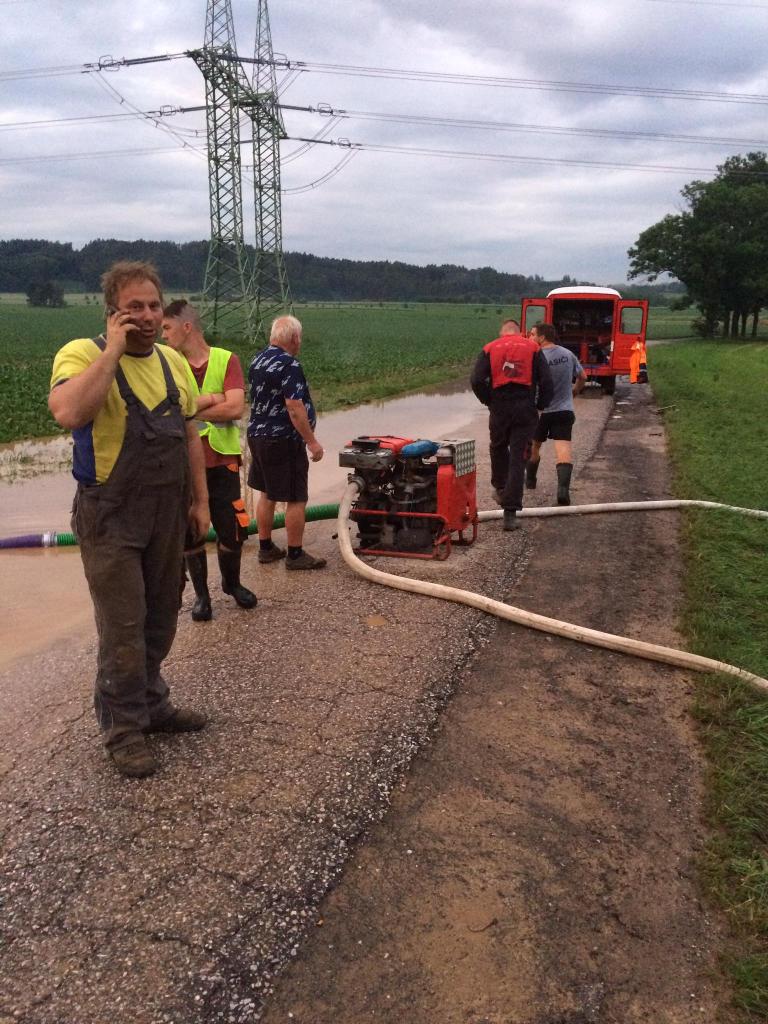 14.6.2020 Výjezd SDH Radim k odčerpání vody ze zaplavené silnice Soběraz-Radim a odstranění bláta. Výjezd za účasti SDH Valdice a SDH Železnice.