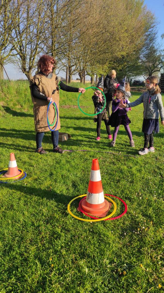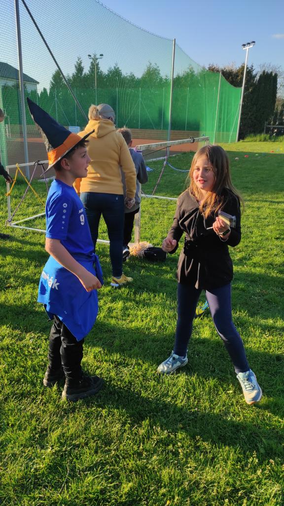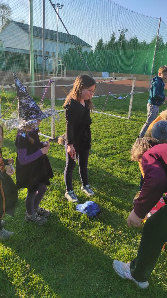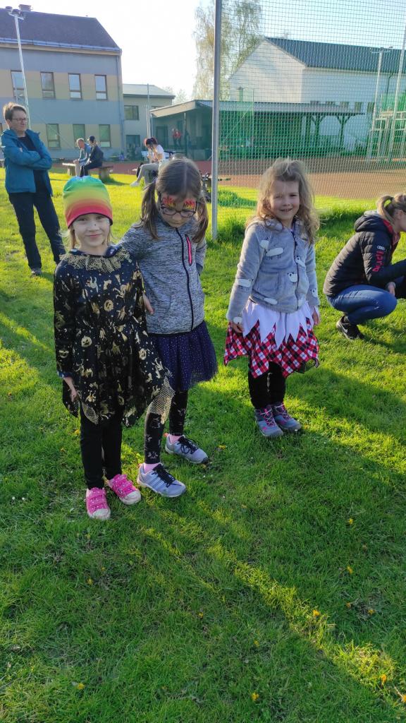Čarodějnický rej na hřišti.
